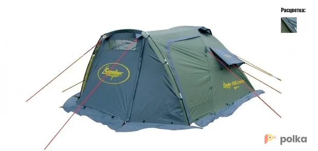 Одна из самых популярных тур-палаток. В отличии от предыдущих моделей, более просторный тамбур снабжен тремя входами. Два отдельных входа есть и у внутренней палатки.